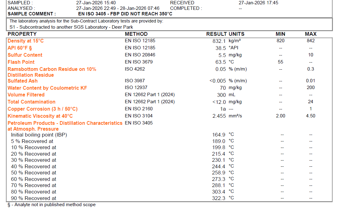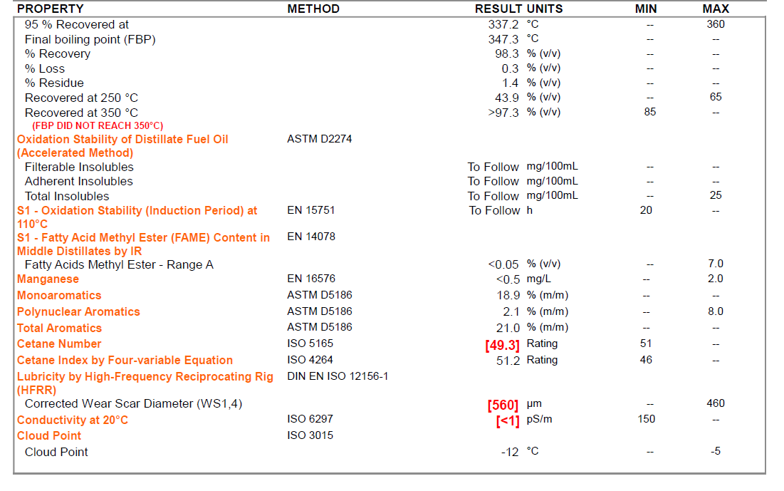 Specification: Standard Ultra Low Sulphur Diesel (ULSD)